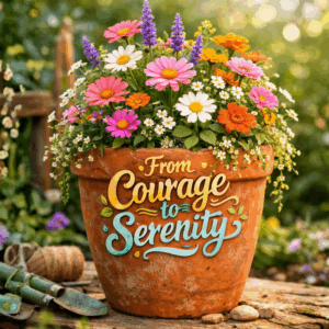 From Courage to Serenity, a journey of deep listening and personal growth, is a gentle pilgrimage inward, where Spirit fills empty vessels and transforms them into beautiful gardens. If your heart yearns to make a new start but you aren’t quite sure where or how to begin, join this contemplative journey to reveal what Spirit wants to grow in you.
